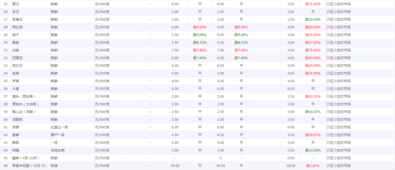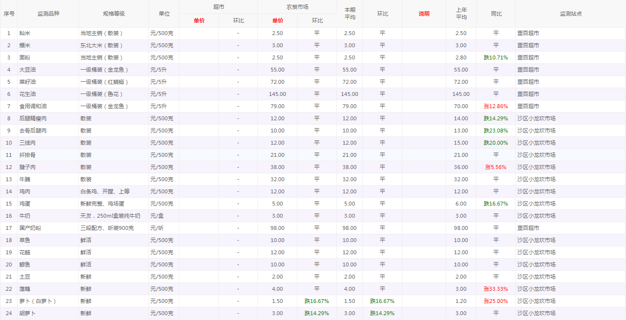 粮油内禽蛋菜水产品等价格应急监测情况(小龙坎农贸市场)采价日期(2025年12月17日)