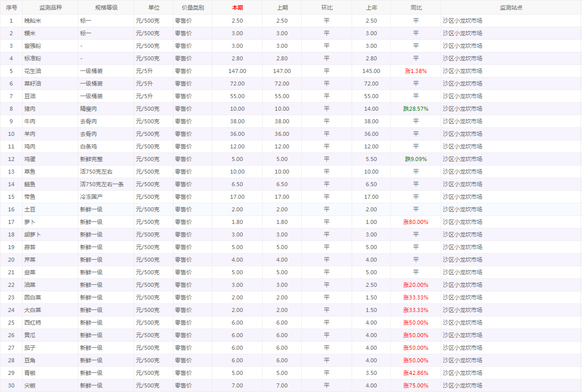 粮油内禽蛋菜水产品等价格应急监测情况(小龙坎农贸市场)采价日期(2025年12月19日)
