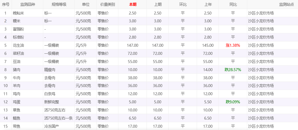 粮油内禽蛋菜水产品等价格应急监测情况(小龙坎农贸市场)采价日期(2026年4月2日)