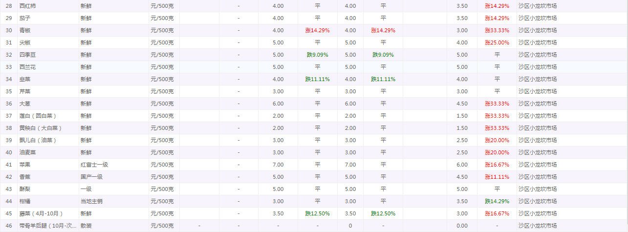 粮油内禽蛋菜水产品等价格应急监测情况(重百超市、小龙坎农贸市场)采价日期(2026年4月8日)