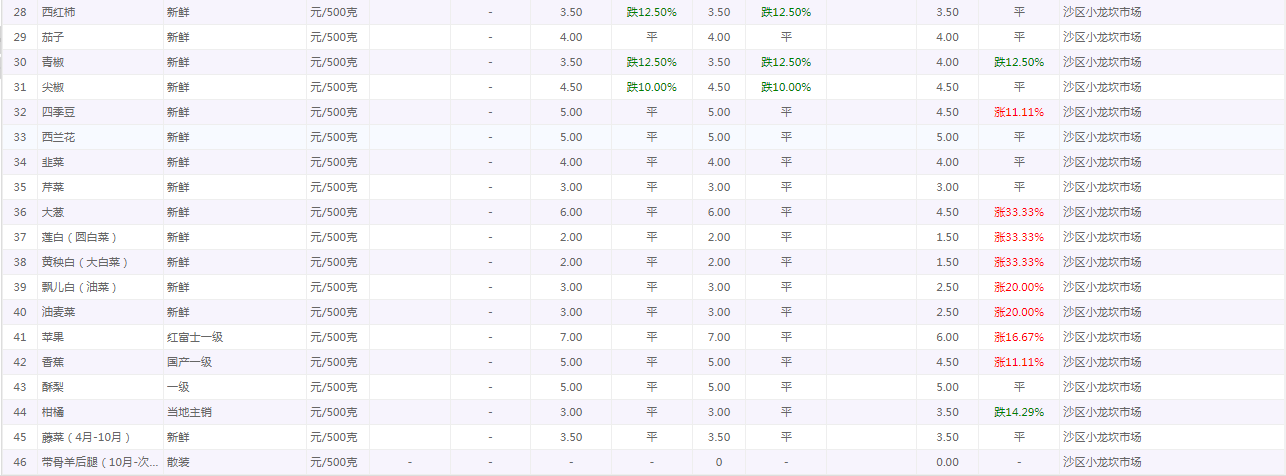 粮油内禽蛋菜水产品等价格应急监测情况(小龙坎农贸市场)采价日期(2026年4月15日)