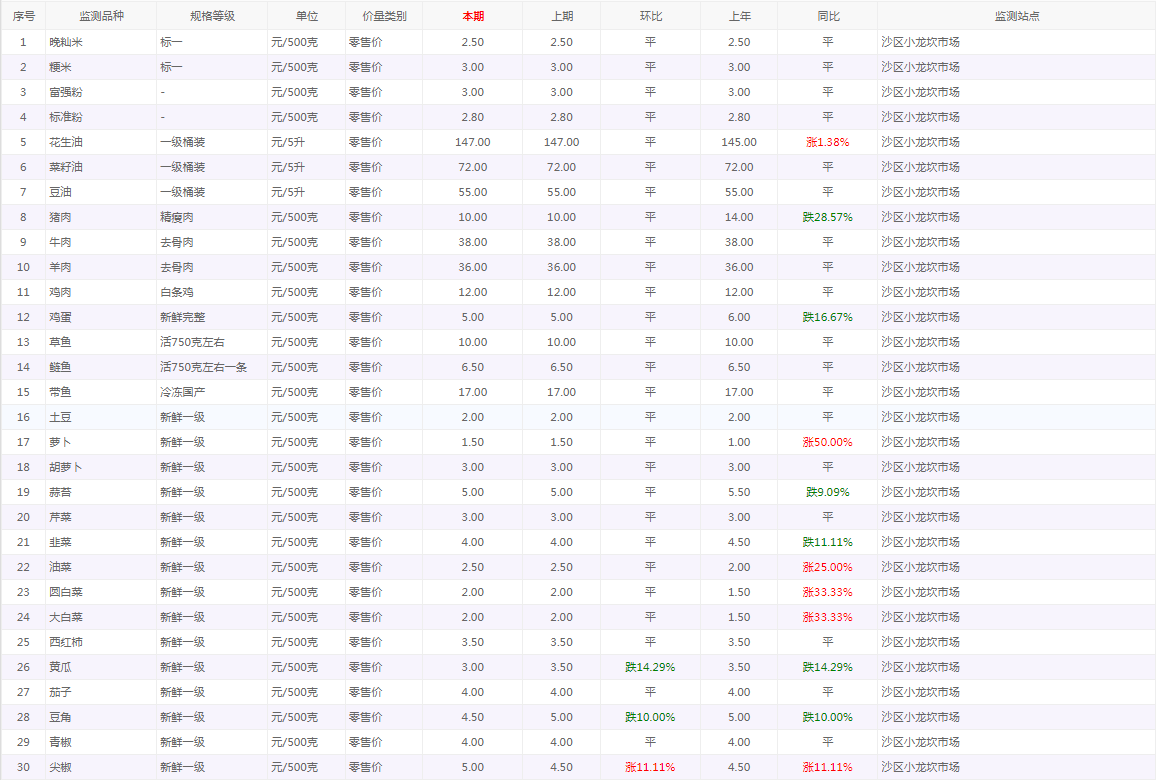 粮油内禽蛋菜水产品等价格应急监测情况(小龙坎农贸市场)采价日期(2026年4月21日)