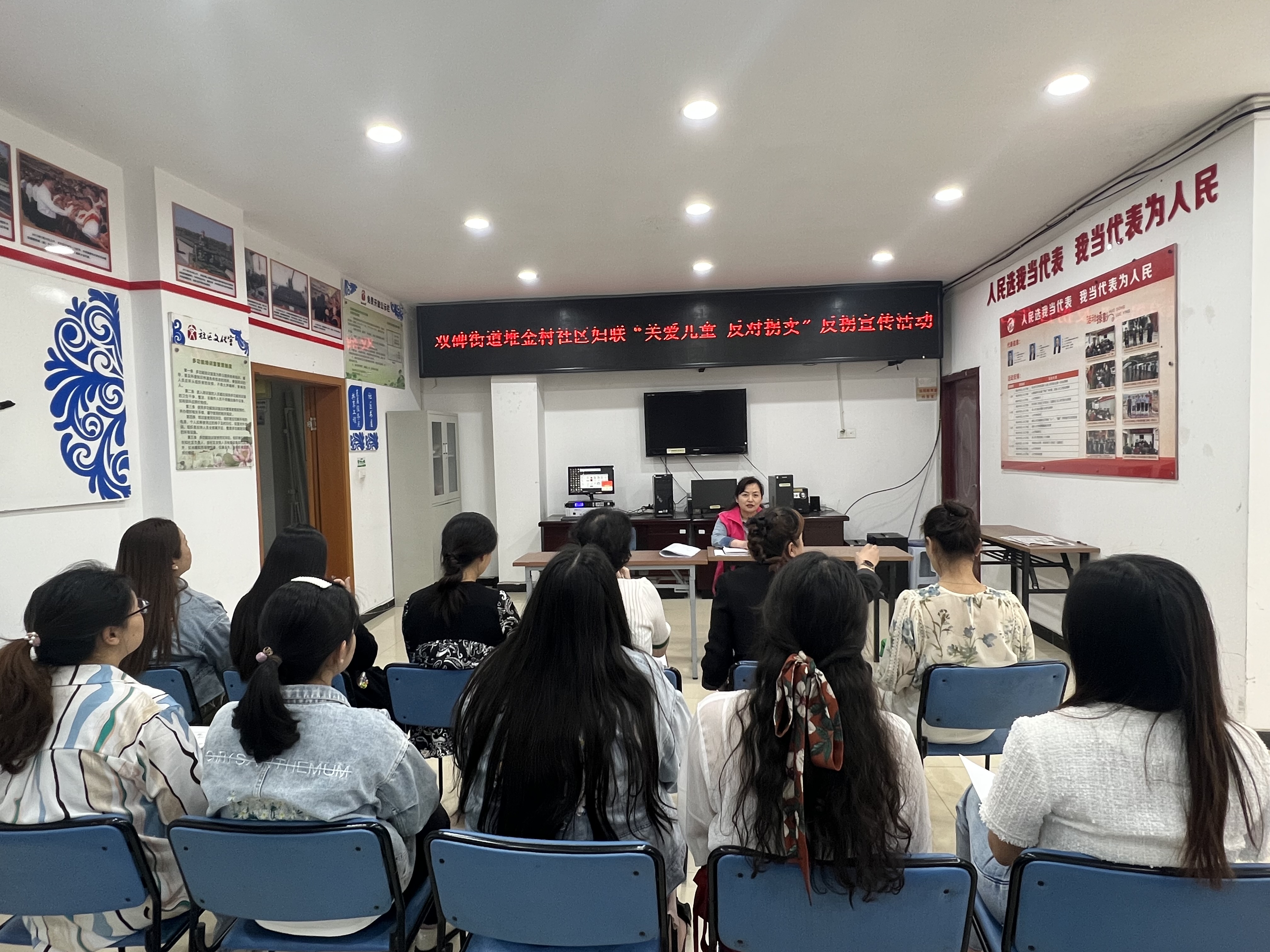 双碑街道堆金村社区妇联开展“关爱儿童、反对拐卖”反拐宣传活动
