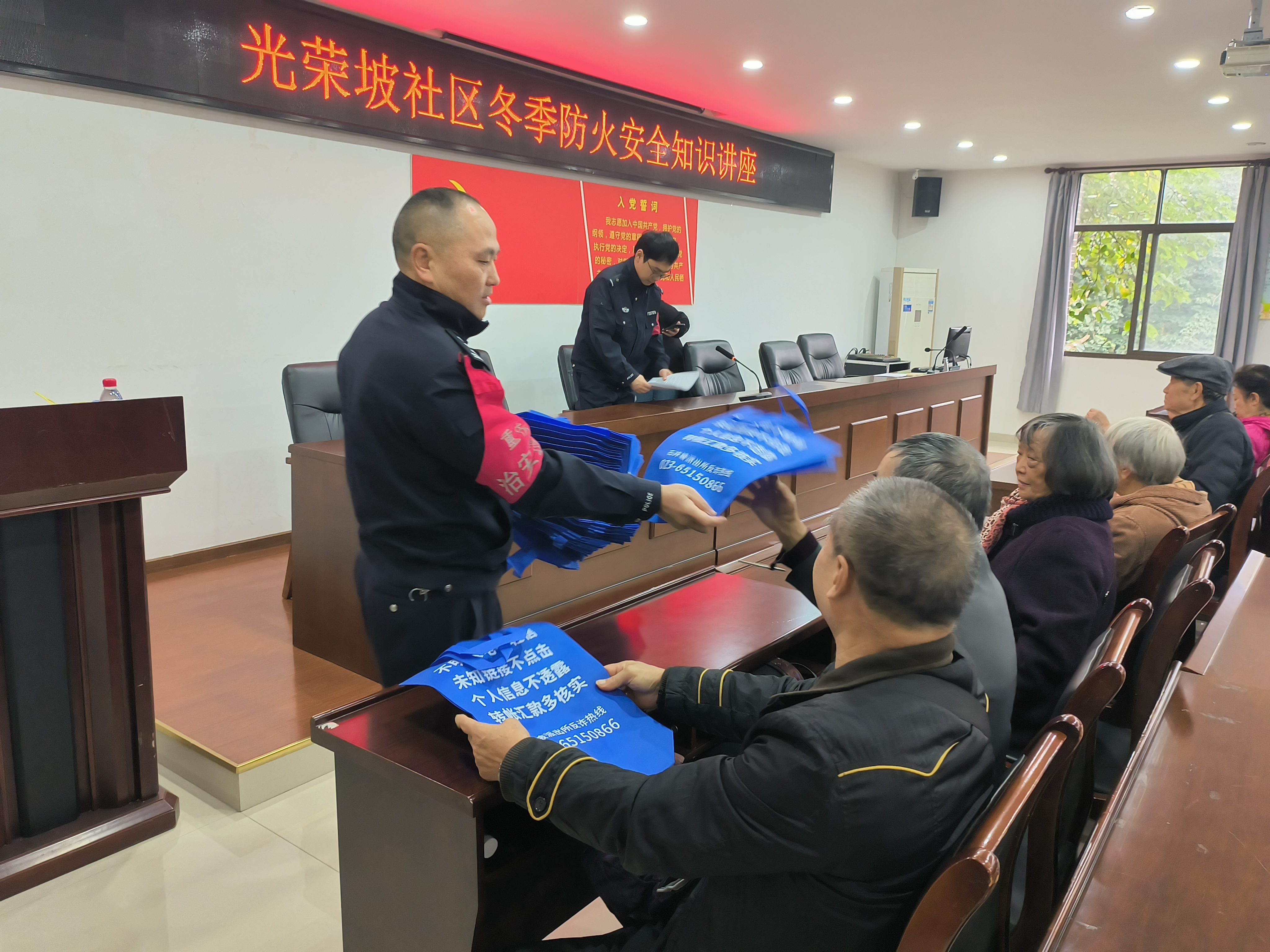 为切实筑牢冬季社区消防安全防线,提升居民防火自救能力。12月15日,光荣坡社区联合辖区派出所开展冬季防火安全知识讲座。