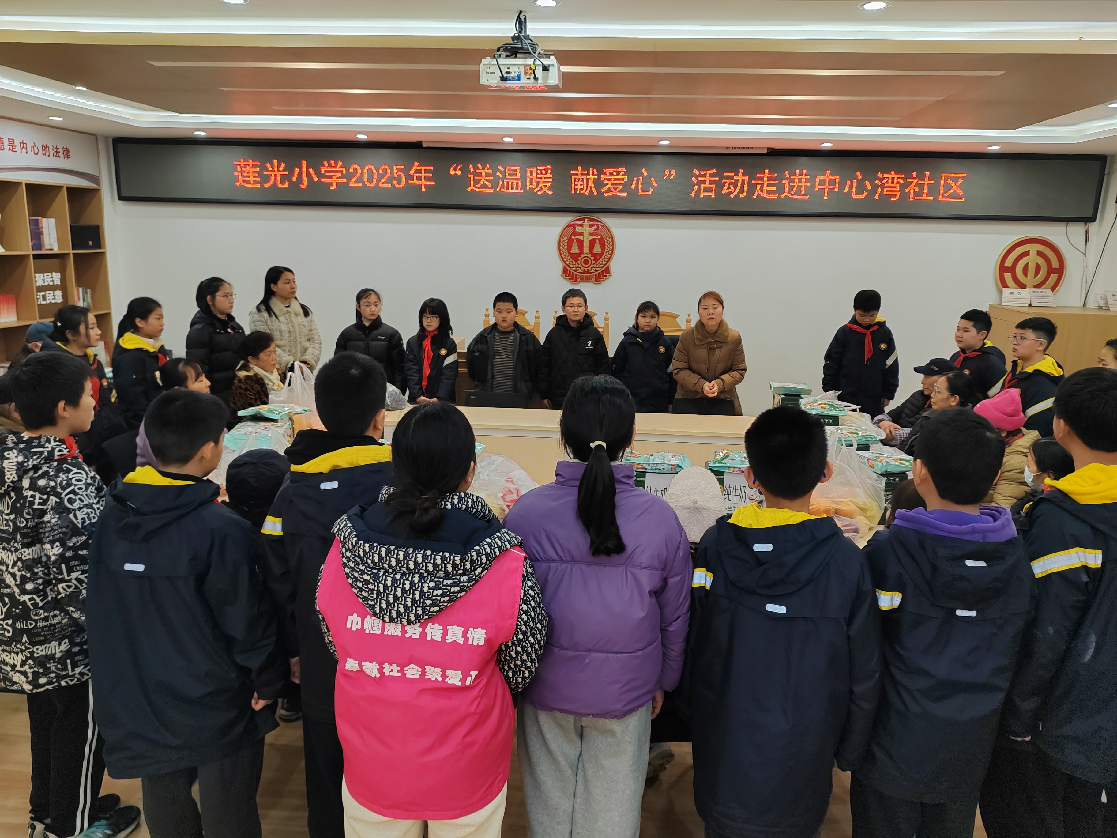 近日,莲光小学组织20余名学生志愿者走进中心湾社区,开展“送温暖献爱心”困难老人慰问活动。