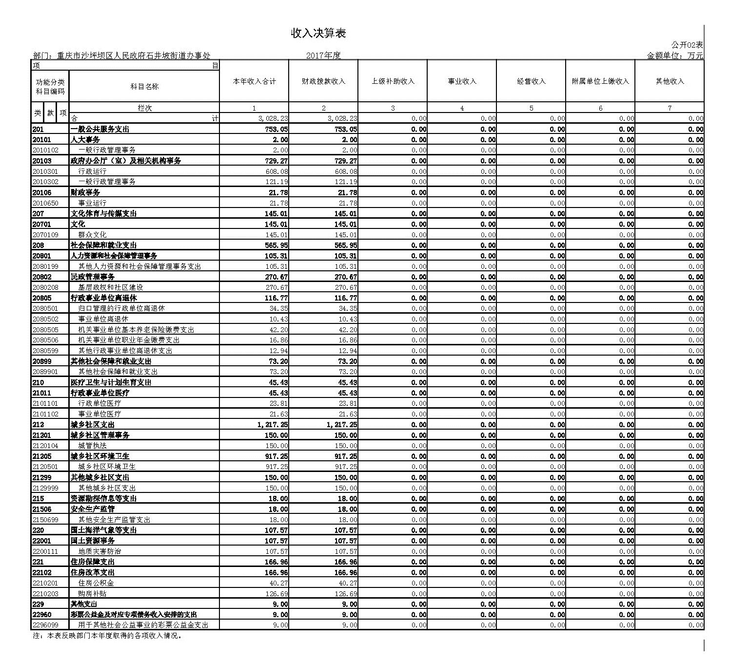 | 名称: | 重庆市沙坪坝区人民政府石井坡街道办事处2017年部门决算情况说明 | ||||