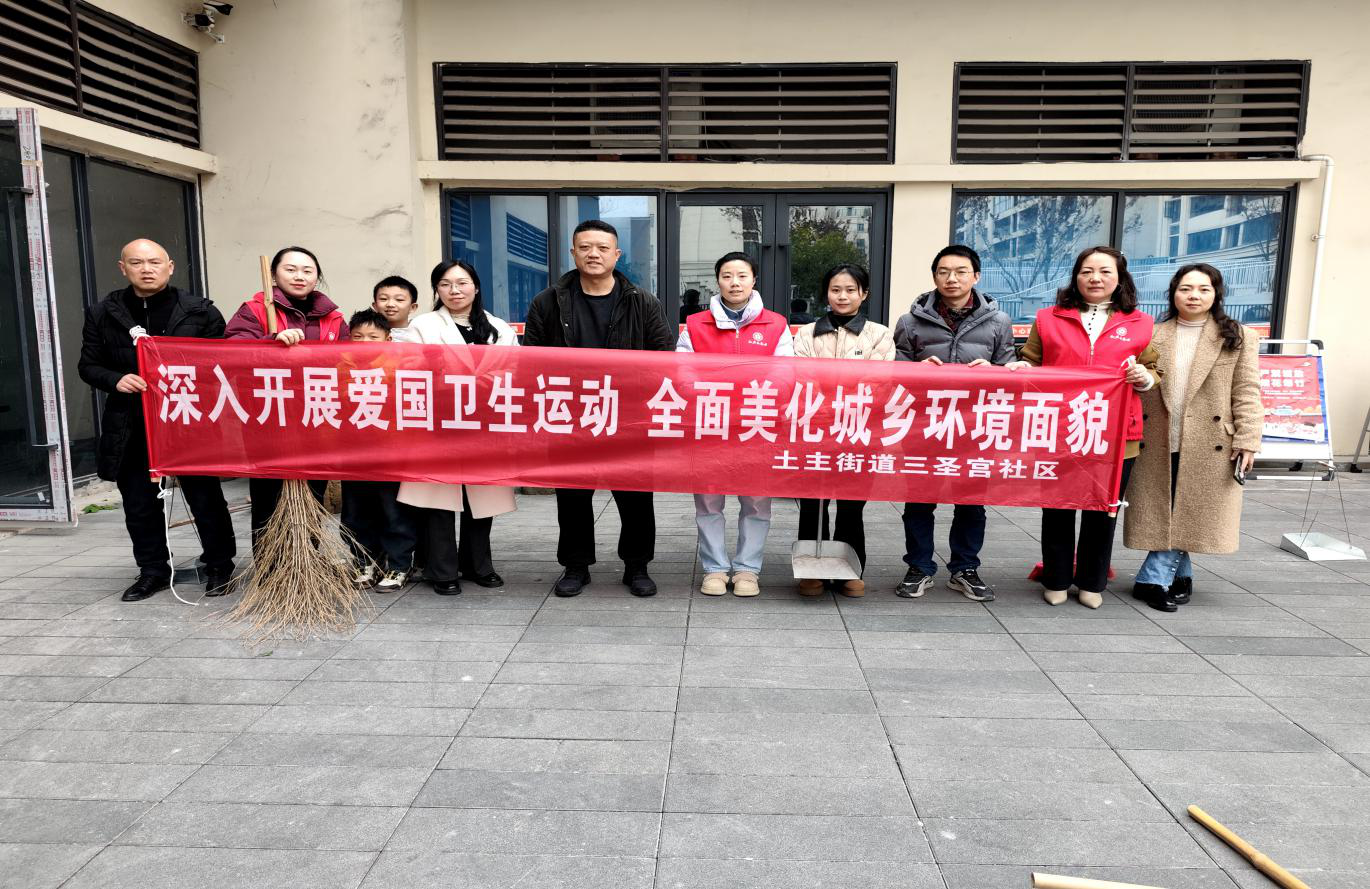 为持续深化爱国卫生运动成效,健全环境整治长效机制,2月4日,土主街道三圣宫社区联合驻社区工作组、社区志愿者队伍,开展“清洁家园·健康同行”主题爱国卫生运动。
