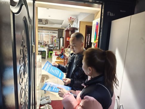 为筑牢电信网络诈骗防护屏障,守护居民财产安全,站东路社区到华宇广场小区入户开展反诈骗宣传活动。
