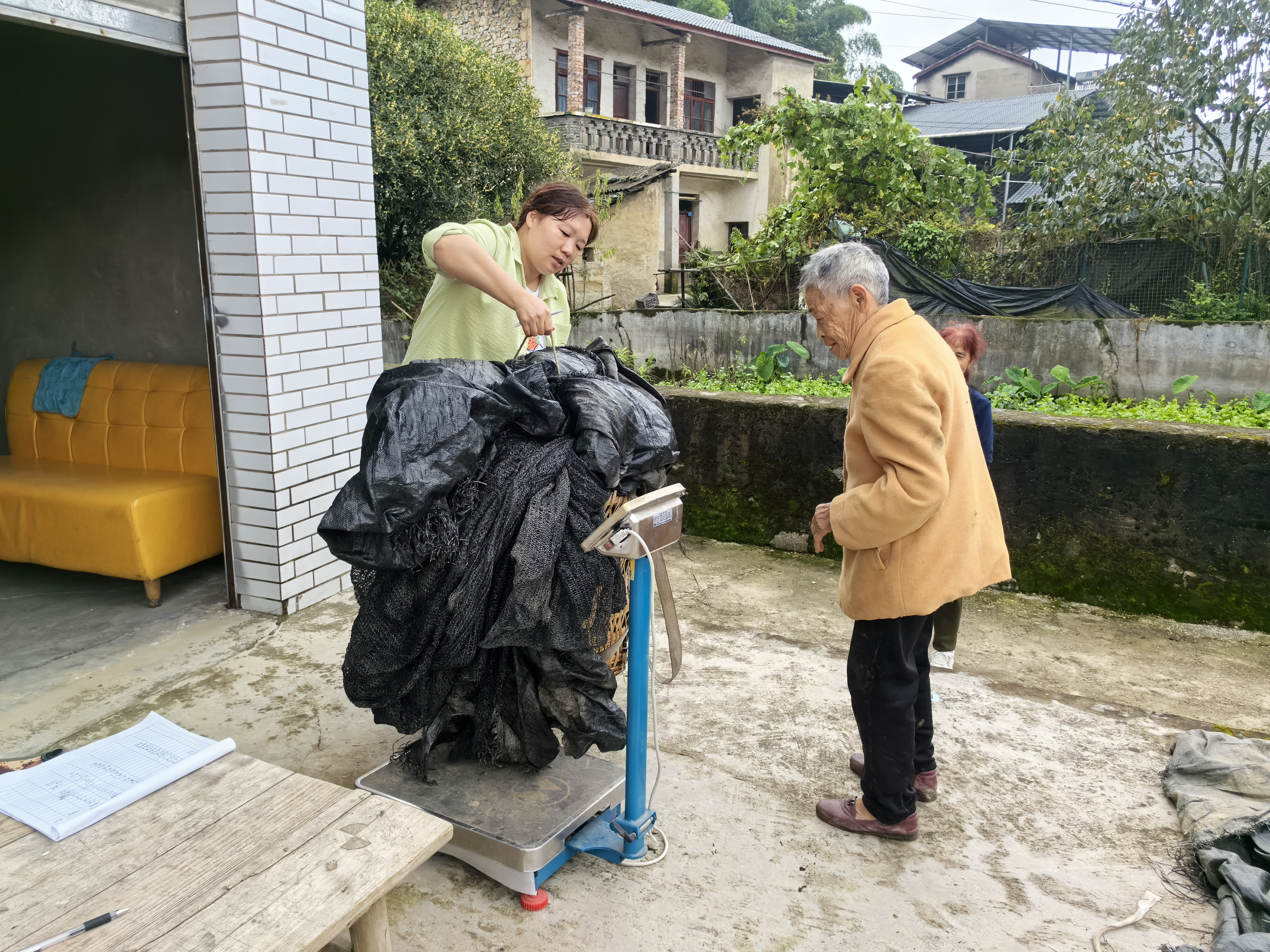 活动前期,村委会通过微信群、入户宣传等方式,向村民普及废弃地膜残留对土壤肥力、作物生长的危害,以及回收处理的环保意义与政策补贴,累计发放宣传资料80余份,覆盖全村100余户农户,充分调动村民参与积极性。回收现场设在桂花垭口社张应德院坝,工作人员提前搭建回收点、准备称重设备与补贴物资。村民们纷纷将田间收集的废弃地膜、农膜打包运送至回收点,工作人员逐一称重、登记,并按照相应标准现场更换物资。