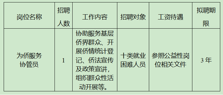 本招聘岗位为公益性招聘岗位,其不适用劳动合同法有关无固定期限劳动合同的规定以及支付经济补偿的规定。应聘人员应确保名下无个体工商户营业执照,企业法人代表身份等,并应如实填写有关信息,凡弄虚作假,一经查实,立即取消录用资格,相应后果由应聘人员自负。
