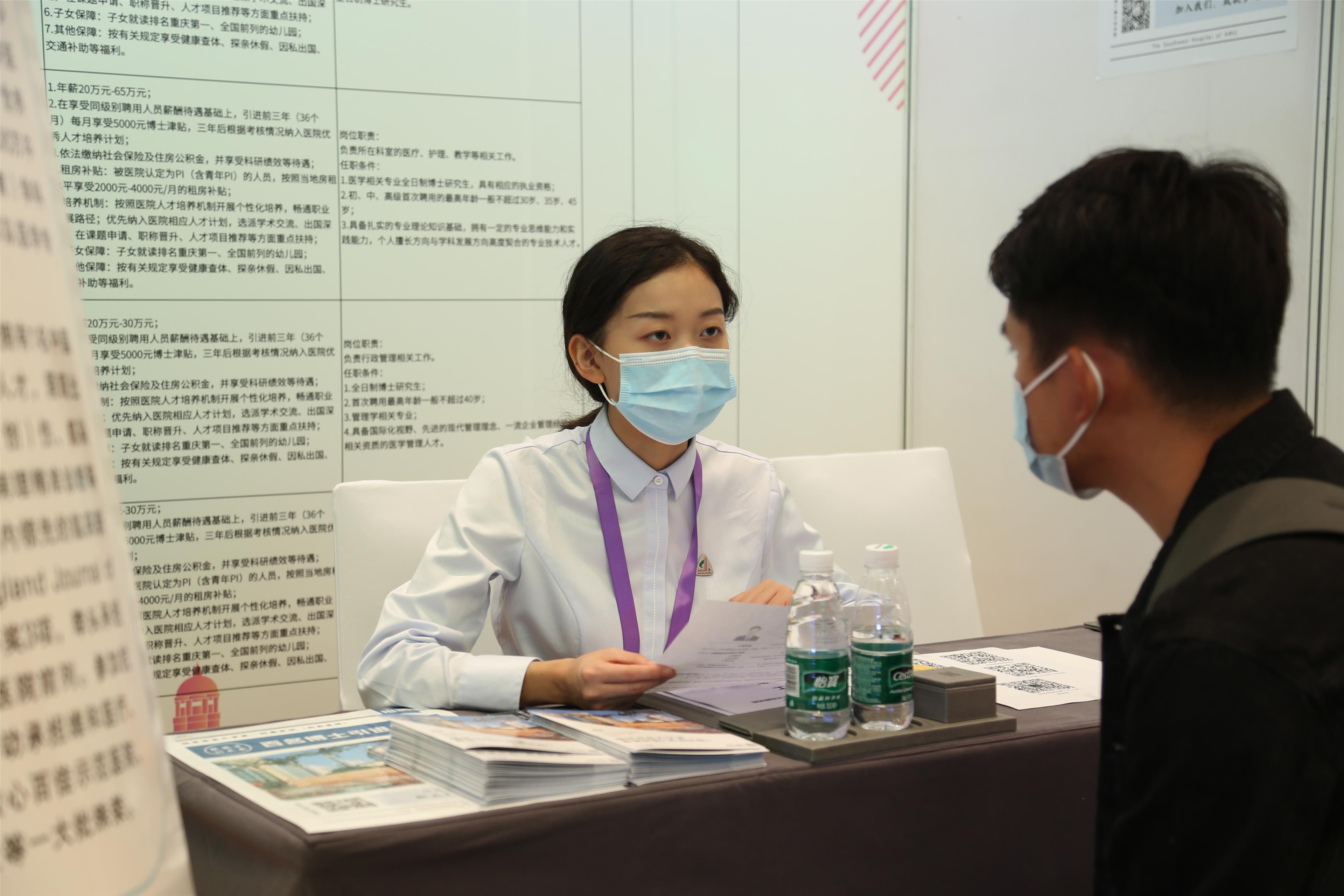 记者在招聘活动现场获悉,本次赴京招聘高层次人才将分2天进行,第一天为现场招聘,高校、企业、事业单位三个专区同步开展招聘;第二天为事业单位报名资格审查,组织笔试、面试,确定意向人选。而本次活动不仅吸引了北京、重庆两地十余家新闻单位实时报道,各招聘单位也在一些细微之处展现沙区风采。像区城市管理局还准备了代表沙坪坝垃圾分类的“沙小厨”玩偶;沙坪坝区第一实验小学还准备了特色文化书签;部分企业还为应聘者提供一些极具沙区特色的小礼品等,在找工作的同时让求职者进一步加深了对沙坪坝的印象。(记者 张浩 文胜)