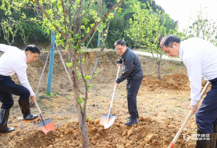 据悉,此次在中梁镇义务植树活动现场种下了李树、桃树、枇杷树、桔柑等果树苗木1200余株。同时,还在区内其余镇街设置分活动场开展集中植树活动。