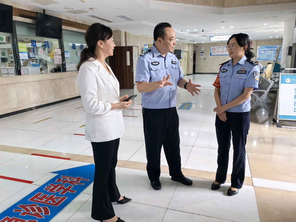 在检查过程中,民警对医院的进出口、大厅、药房、收费处、安全通道、住院部、监控室等重点区域进行了实地走访,细致排查可能存在的安全风险点。同时,对医院的安全管理制度、最小应急单元建设、消防设施、安防系统、保卫人员教育培训、值班巡逻等落实及运行情况进行了逐一查看和指导。同时强调,要将医院安全管理置于重要位置,增强安全意识,切实落实主体责任,建立健全长效安全管理机制,并与公安机关密切配合,共同维护医院安全稳定的就医环境。