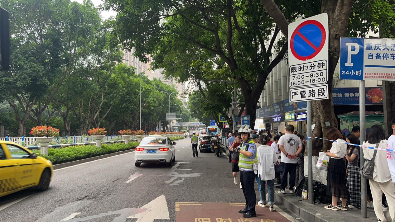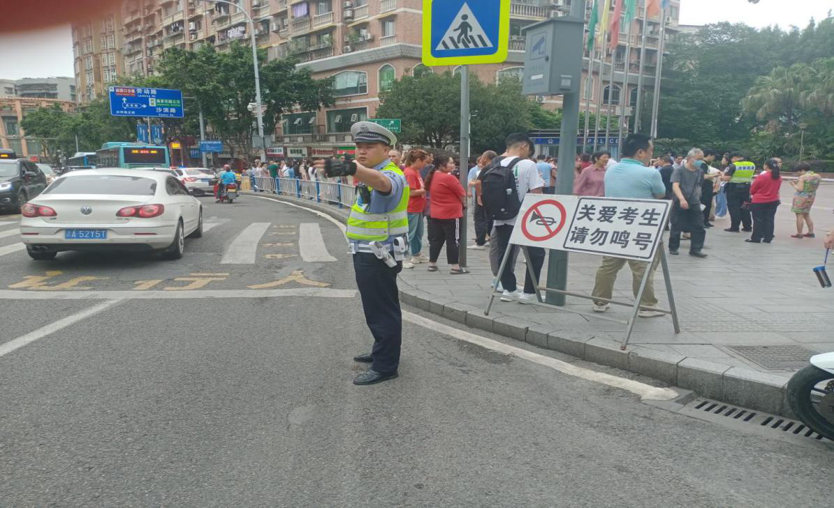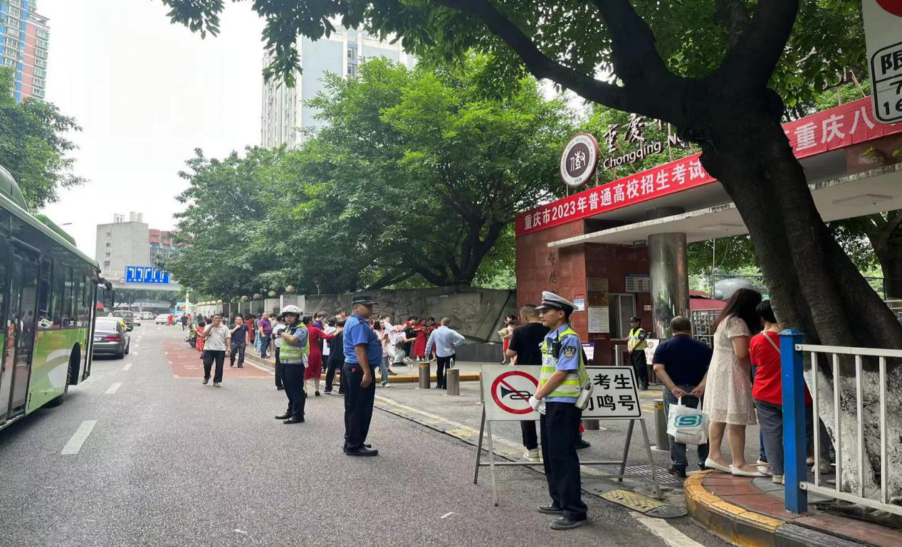 高考期间,沙坪坝区保安公司加强保安力量部署,落实“一校一方案”“一校一预案”,配合沙坪坝区公安分局交巡警支队科学实施考点道路交通管制,优化服务引导,提升送考车辆通行效率。在考点周边开辟临时停车区域、家长等候区域,在主要道路设立“禁鸣限速”提示牌,严查乱鸣喇叭、闯禁行等交通违法行为。