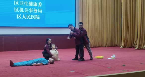 近期,为提升区级机关工作人员应对突发事件和意外伤害的应急救援能力,区机关事务管理局联合区卫生健康委、区人民医院,在机关礼堂组织开展了机关人员急救技能专项培训。
