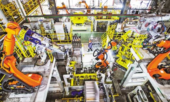2月24日,万州经开区长安跨越焊接车间,机器人和工人密切配合抓生产,全力冲刺开门红。特约摄影 冉孟军/视觉重庆