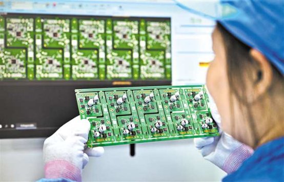 2月24日,利龙中宝智能工厂,技术人员在智能座舱项目检查PCBA板(印刷电路板组件)。记者 张锦辉 摄/视觉重庆