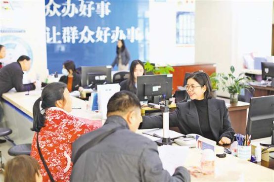2月24日,沙坪坝区丰文街道便民服务中心,工作人员为群众办理相关业务。特约摄影 孙凯芳/视觉重庆