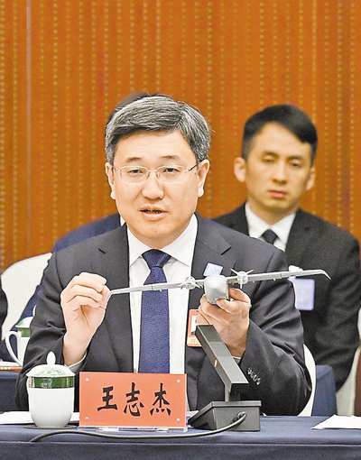 3月6日,十四届全国人大四次会议重庆代表团举行开放团组会议。会上,王志杰代表介绍彩虹YH-1000S。首席记者 龙帆 摄/视觉重庆