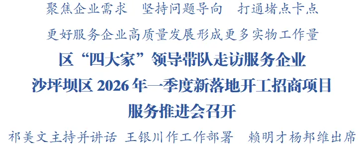 ●务实扎实。面对新形势、新任务、新挑战,“四大班子”坚持带头招商,带动全区全员招商、外出招商、产业链招商,务实高效做好“三服务”,招商机制更加健全、招商成效日益凸显,各级干部以“走遍千山万水”的韧劲、“说尽千言万语”的真诚,持续绘就沙坪坝欣欣向荣的美好图景。