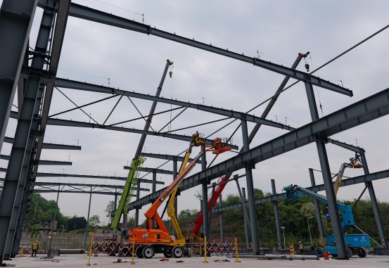 (沙磁荟-沙坪坝融媒 记者 郭思云 摄影报道)3月27日上午,位于沙坪坝区青凤科创城的智能网联新能源汽车城厂房四期配套工程项目现场机械轰鸣、焊花闪动。工人、机具正在加紧作业,有序推进辅房主体结构建设和钢结构吊装工程。“截至目前,项目已完成70%,接下来将进行屋面维护结构和项目地面施工。”中国建筑第四工程局项目经理杨贺表示,“我们将在确保安全和质量的前提下提效率、抢进度,推动青凤科创城重点项目建设跑出‘加速度’。”