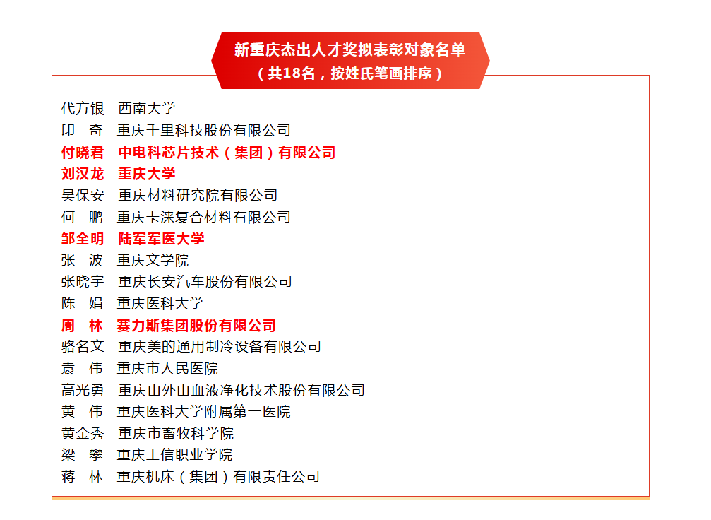 新重庆杰出人才!沙坪坝4人拟获表彰