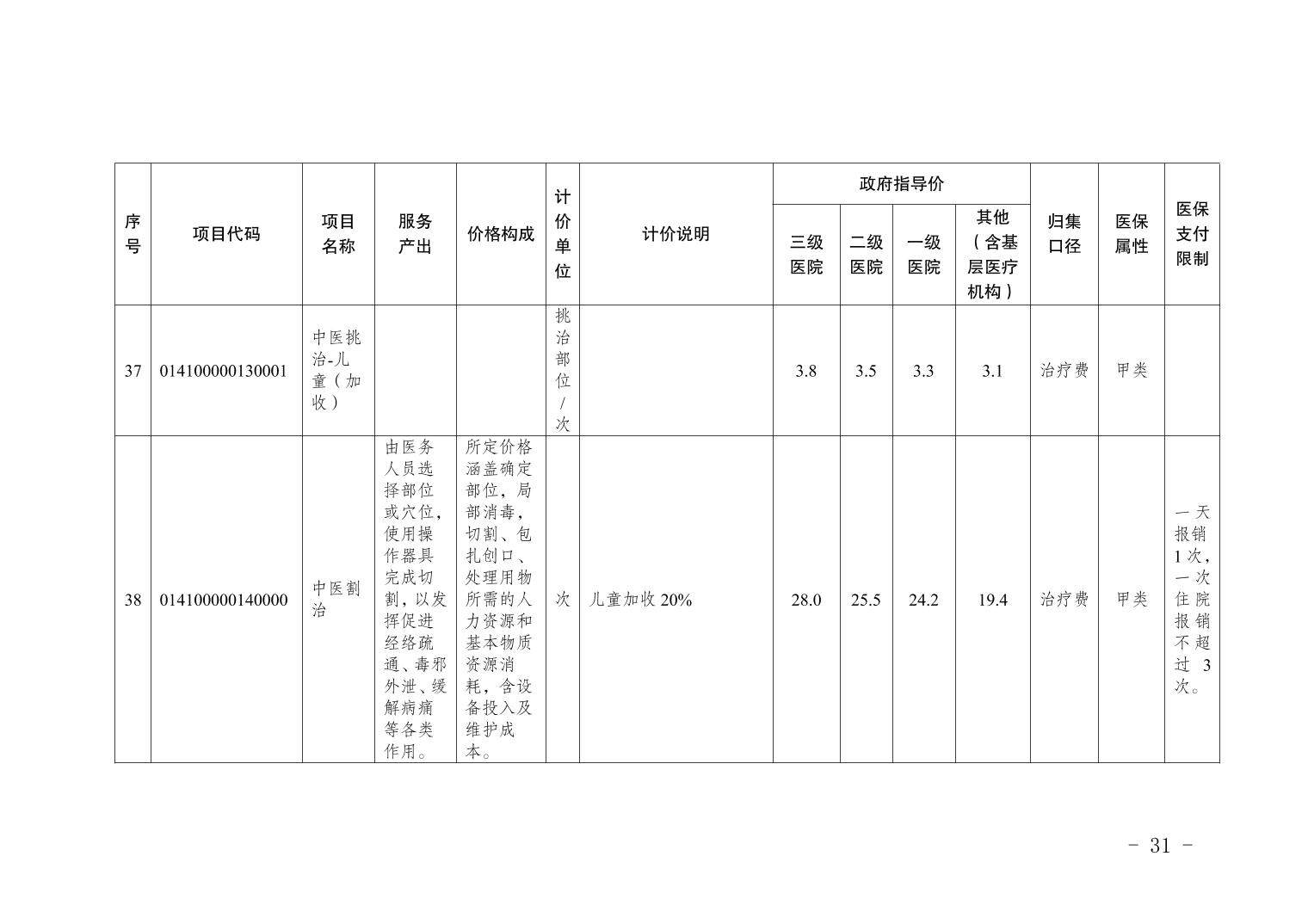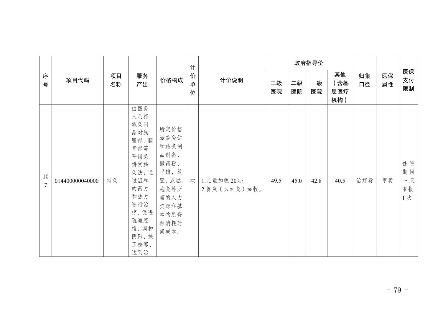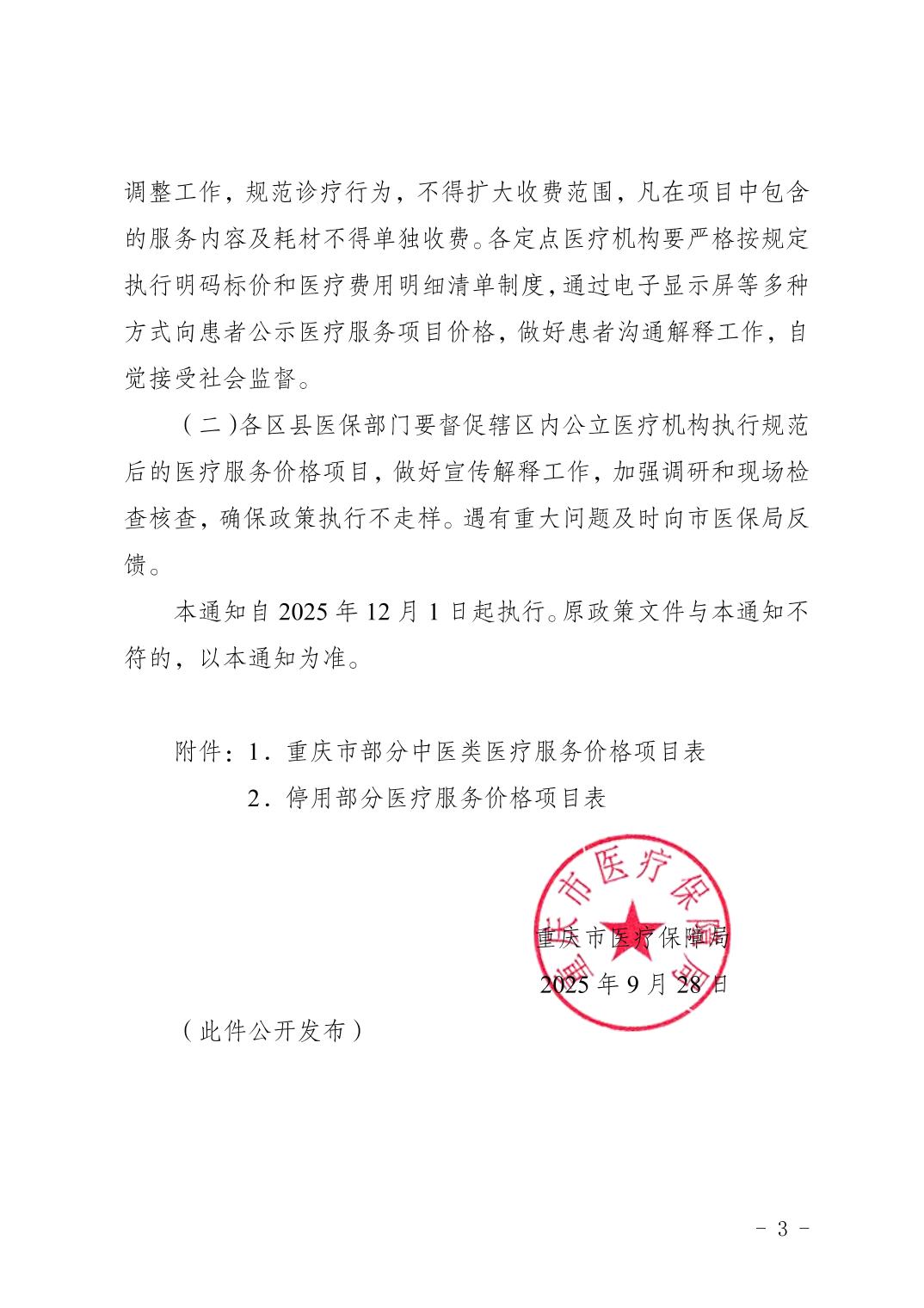 重庆市医疗保障局 关于规范部分中医类医疗服务价格项目及医保支付政策的通知
