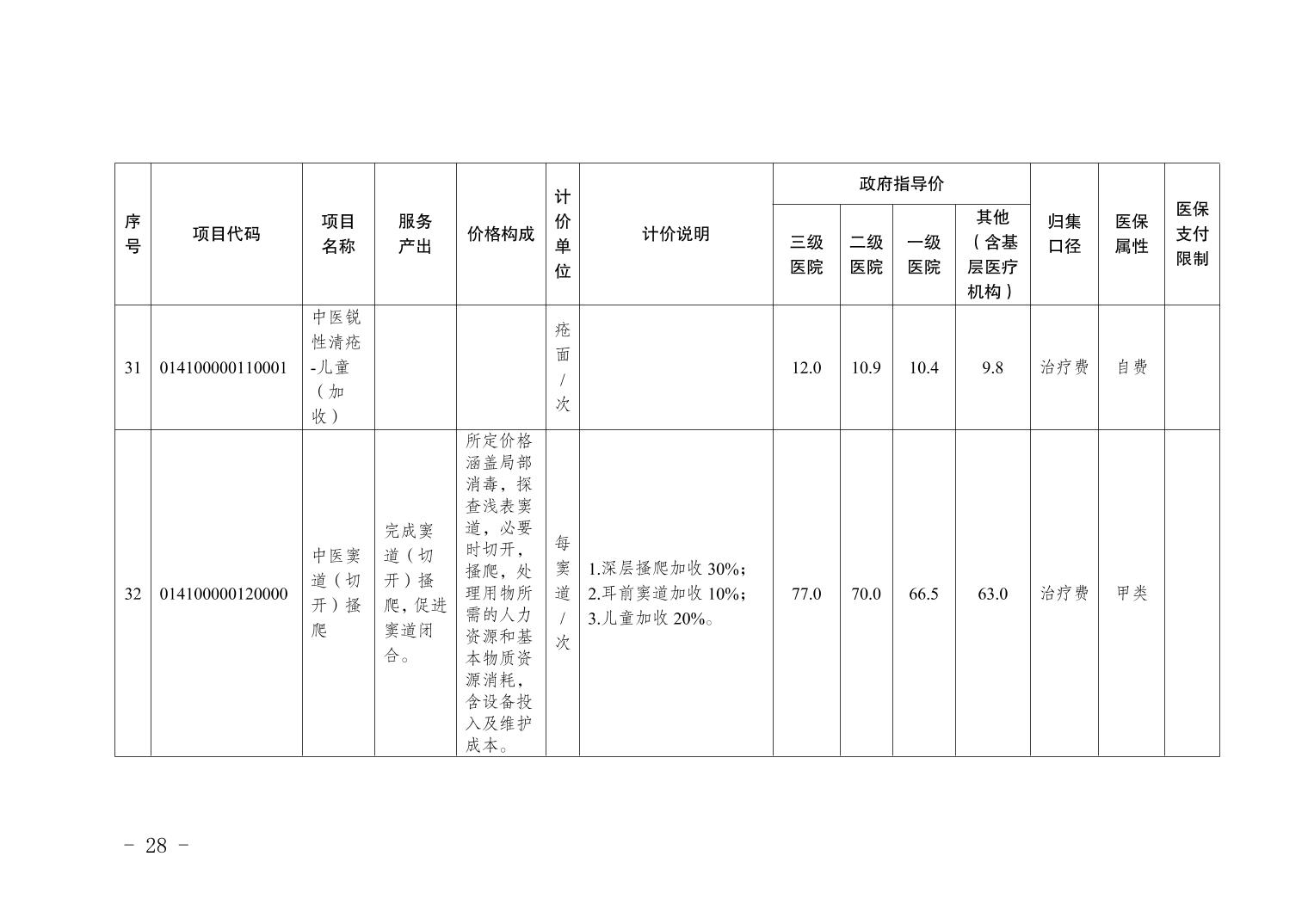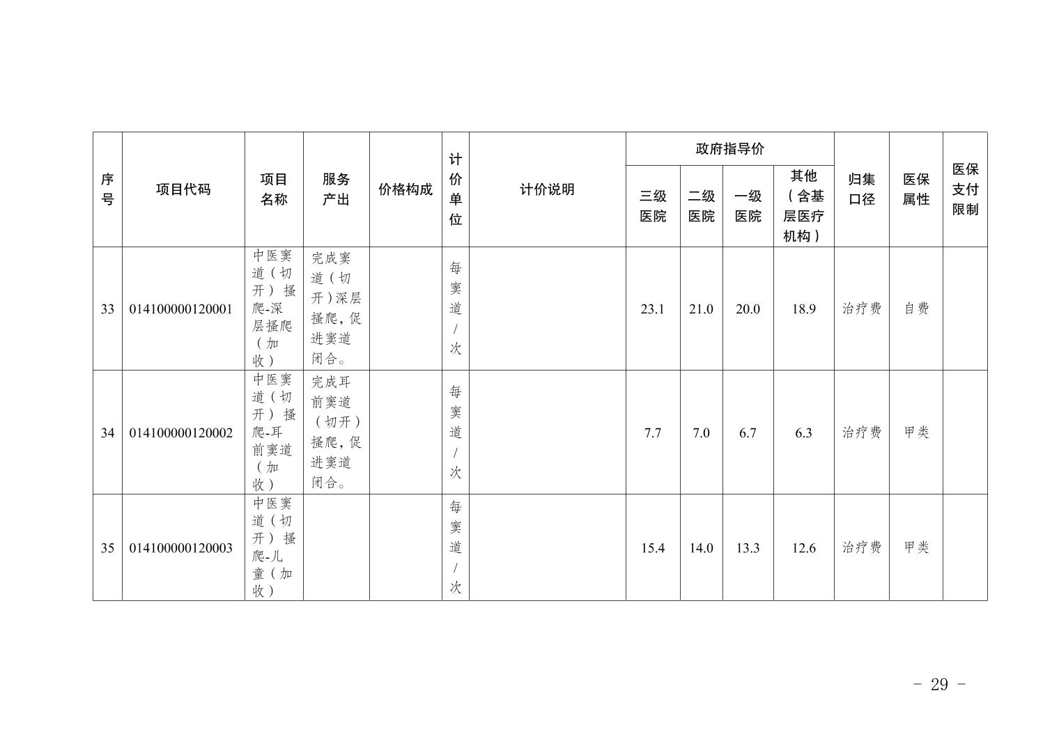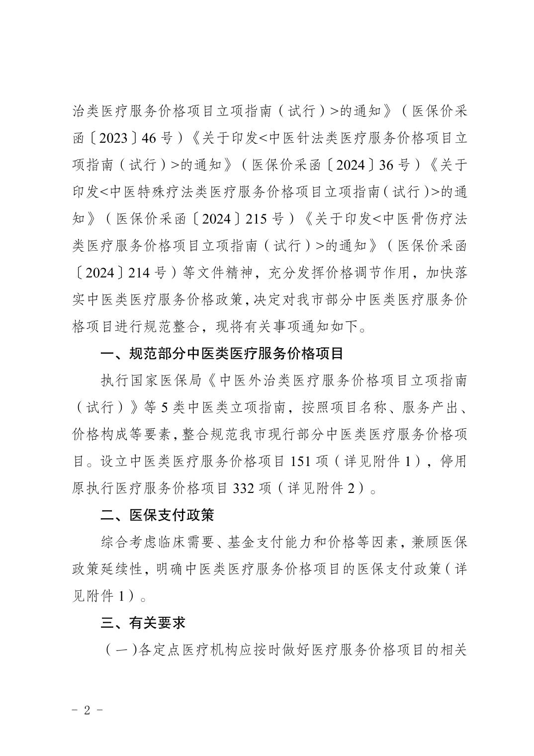 重庆市医疗保障局 关于规范部分中医类医疗服务价格项目及医保支付政策的通知