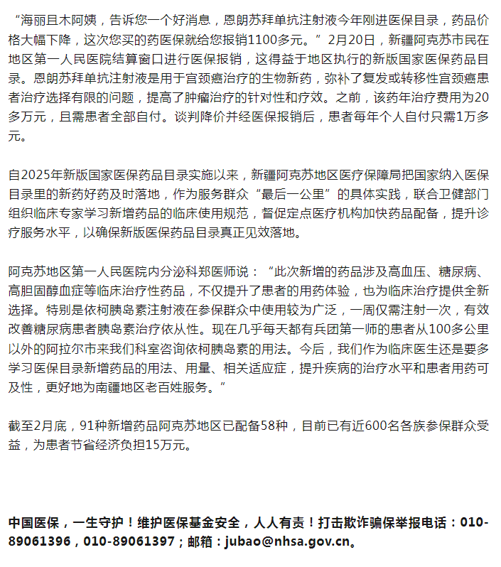 新版医保药品目录在这里及时落地,让少数民族群众用上更多新药好药