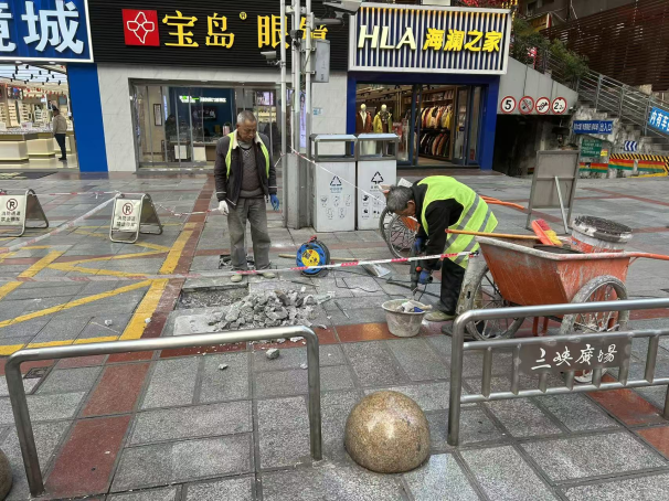 三峡广场商圈管理委员会开展辖区路面巡查维护工作