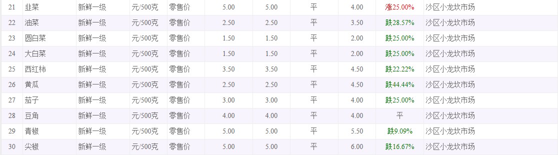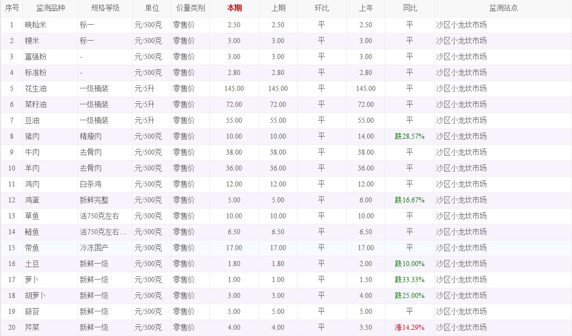 粮油内禽蛋菜水产品等价格应急监测情况(小龙坎农贸市场)采价日期(2025年9月19日)