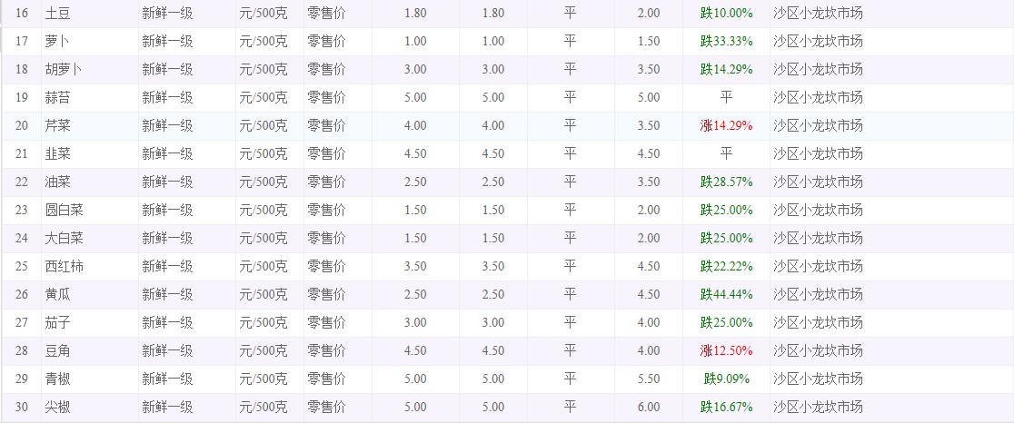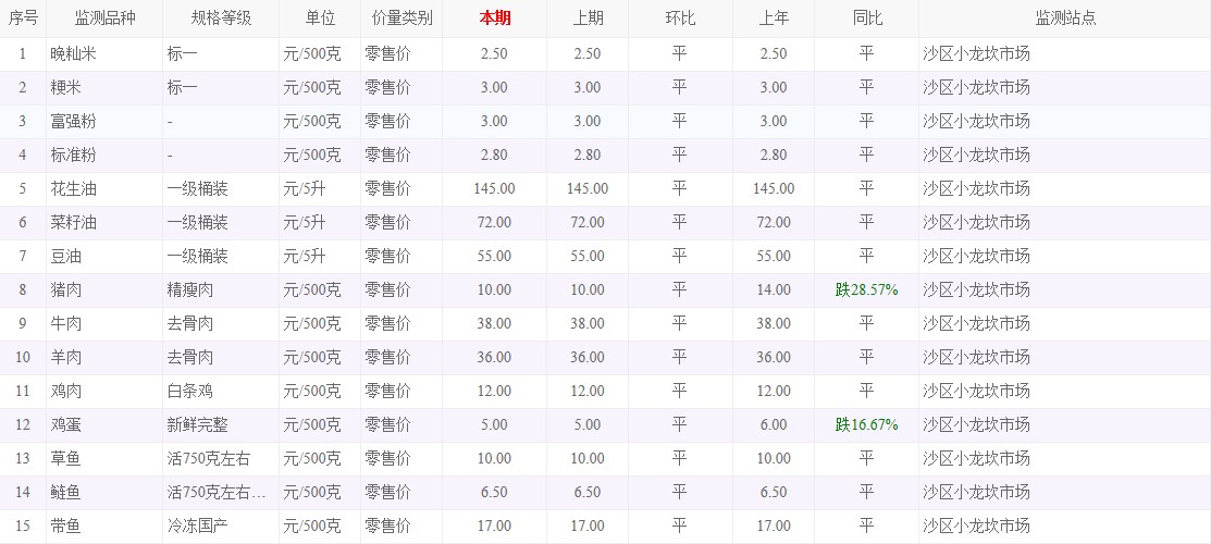 粮油内禽蛋菜水产品等价格应急监测情况(小龙坎农贸市场)采价日期(2025年9月23日)