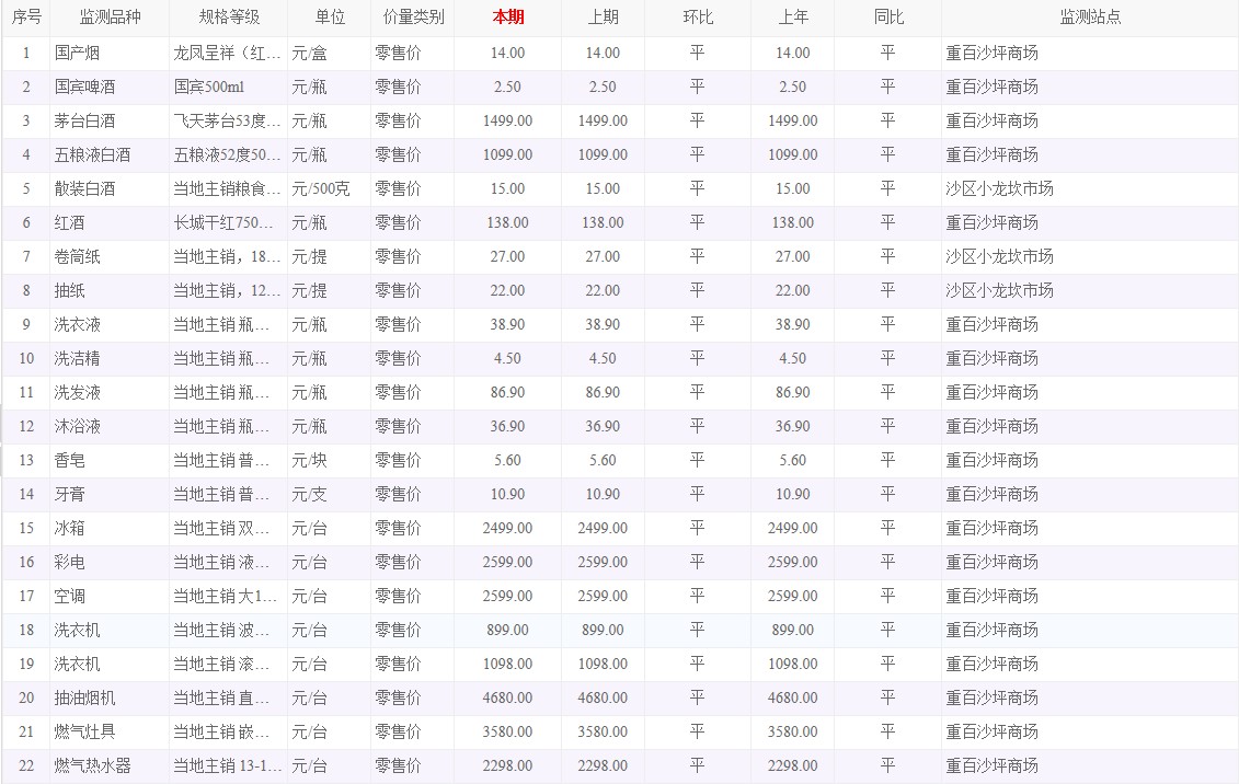 居民日用工业消费品零售价格监测情况(重百沙坪商场 、沙区小龙坎市场 采价日期:2025年9月25日)