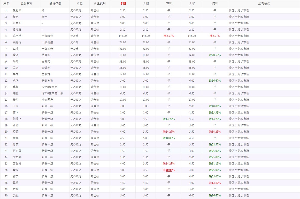粮油内禽蛋菜水产品等价格应急监测情况(小龙坎农贸市场)采价日期(2025年9月25日)