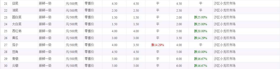 粮油内禽蛋菜水产品等价格应急监测情况(小龙坎农贸市场)采价日期(2025年9月28日)