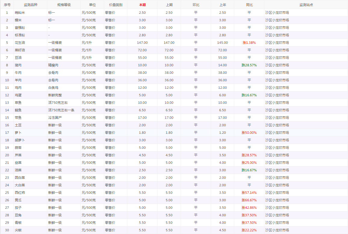 粮油内禽蛋菜水产品等价格应急监测情况(小龙坎农贸市场)采价日期(2025年11月27日)