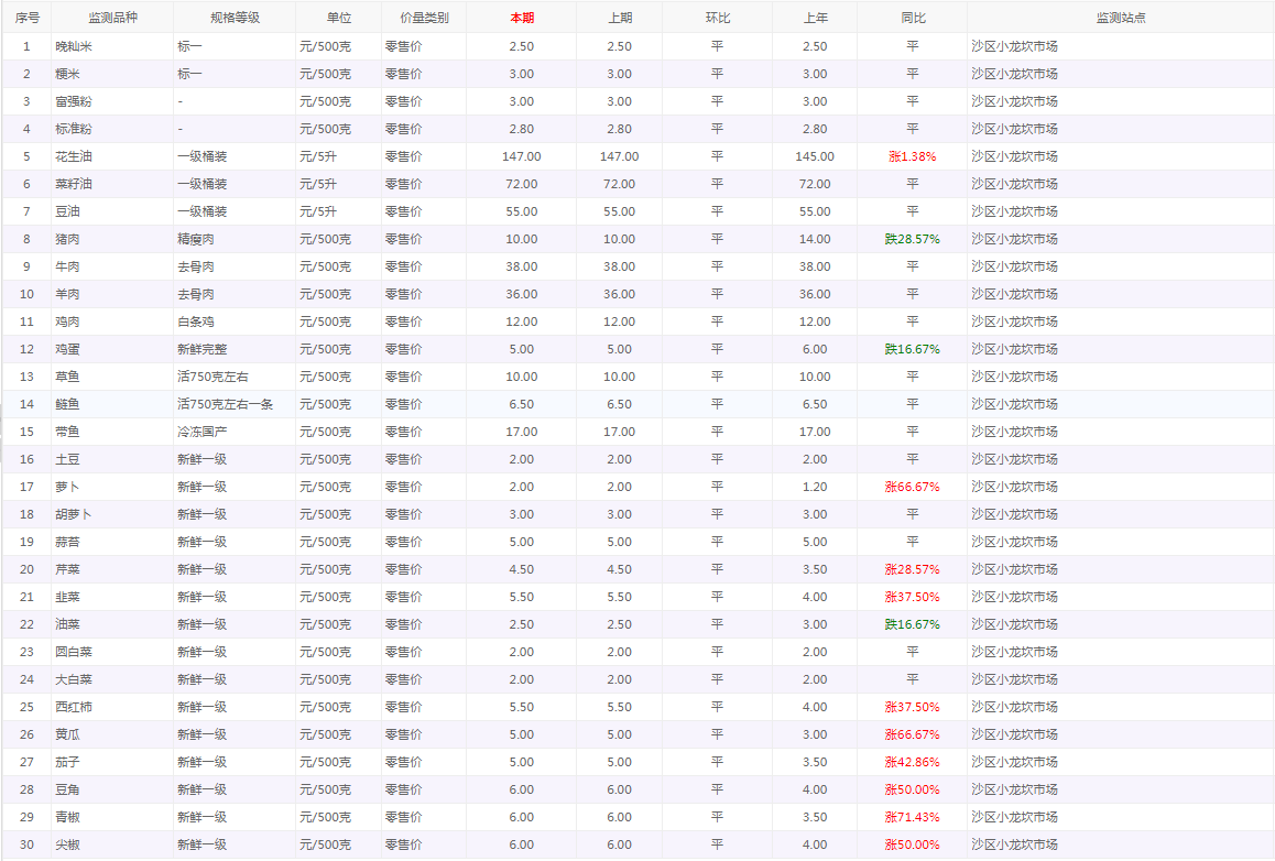 粮油内禽蛋菜水产品等价格应急监测情况(小龙坎农贸市场)采价日期(2025年12月4日)