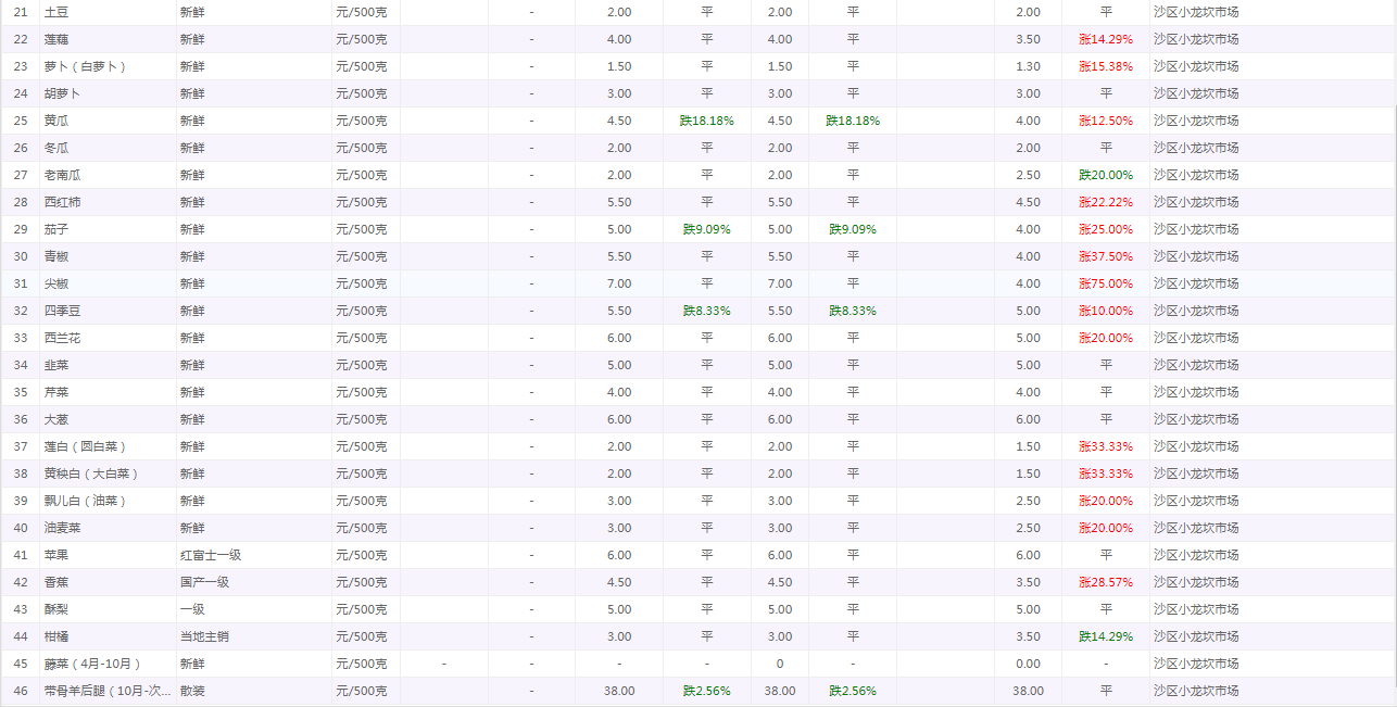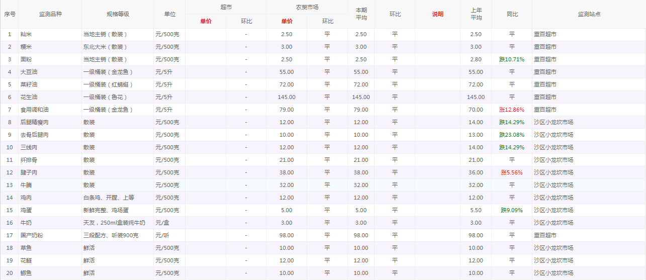 粮油内禽蛋菜水产品等价格应急监测情况(重百超市、小龙坎农贸市场)采价日期(2026年1月7日)