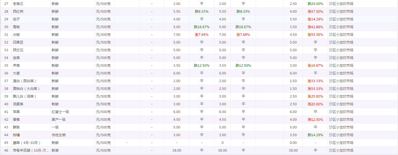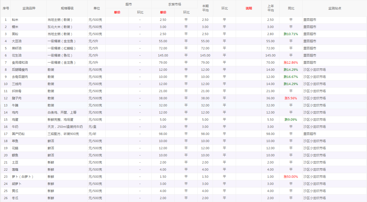 粮油内禽蛋菜水产品等价格应急监测情况(重百超市、小龙坎农贸市场)采价日期(2026年2月4日)