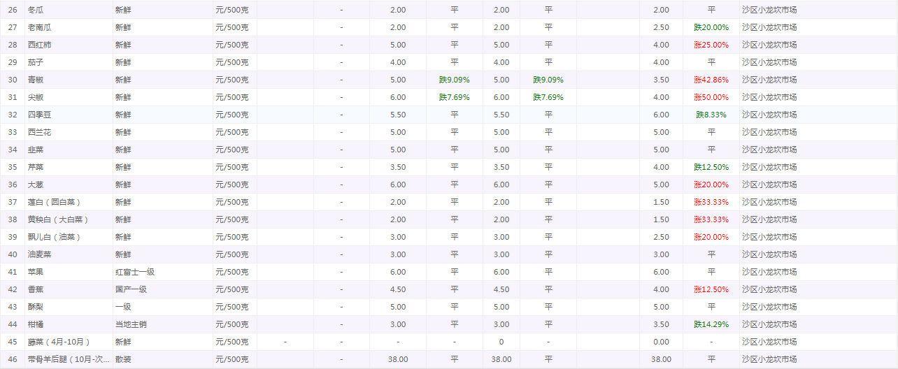 粮油内禽蛋菜水产品等价格应急监测情况(重百超市、小龙坎农贸市场)采价日期(2026年2月25日)