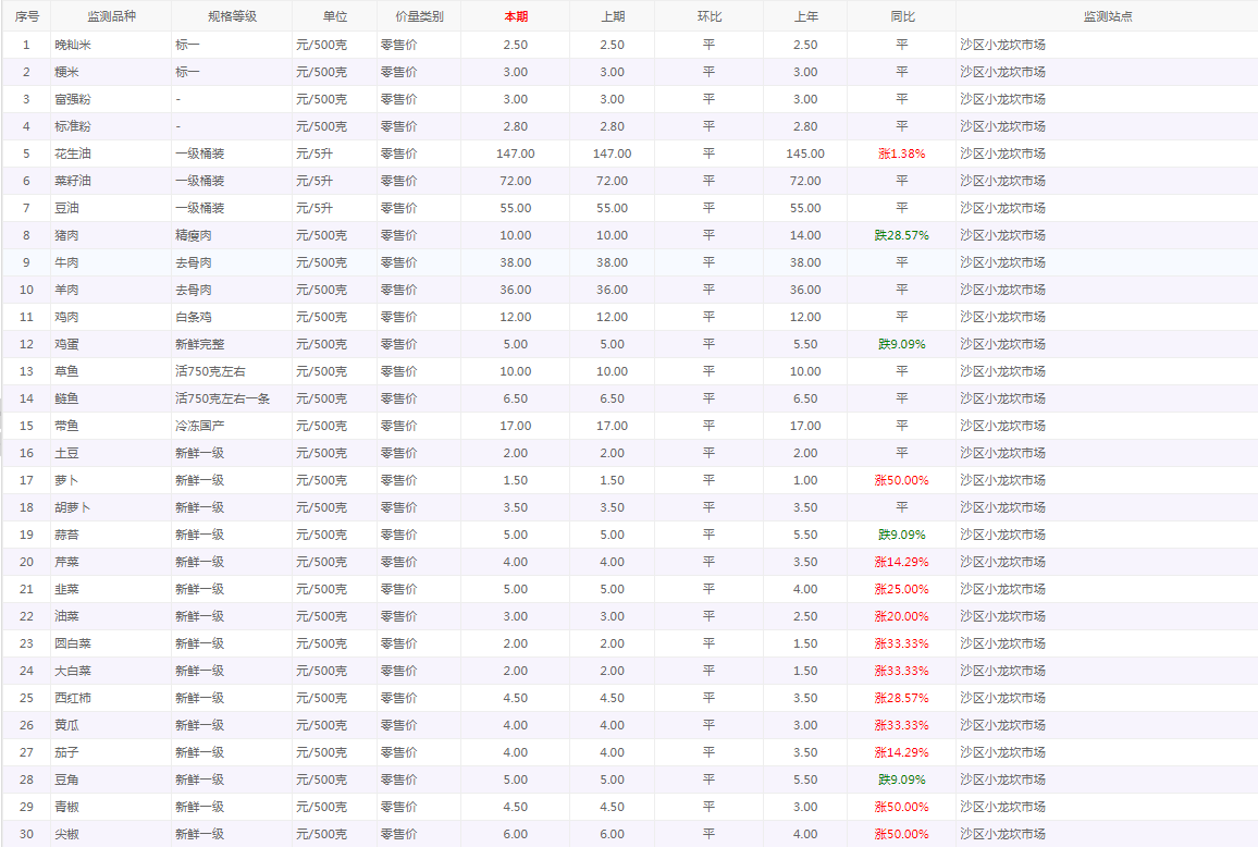 粮油内禽蛋菜水产品等价格应急监测情况(小龙坎农贸市场)采价日期(2026年3月12日)