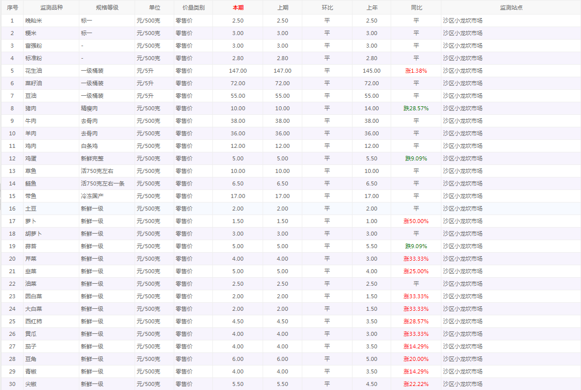 粮油内禽蛋菜水产品等价格应急监测情况(小龙坎农贸市场)采价日期(2026年3月24日)
