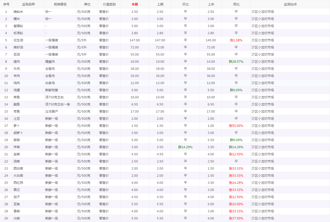 粮油内禽蛋菜水产品等价格应急监测情况(小龙坎农贸市场)采价日期(2026年3月27日)