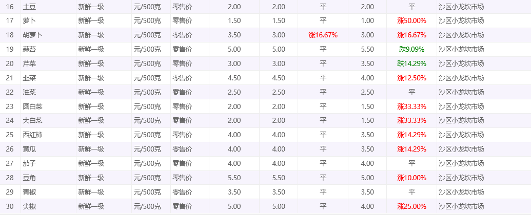 粮油内禽蛋菜水产品等价格应急监测情况(小龙坎农贸市场)采价日期(2026年4月2日)