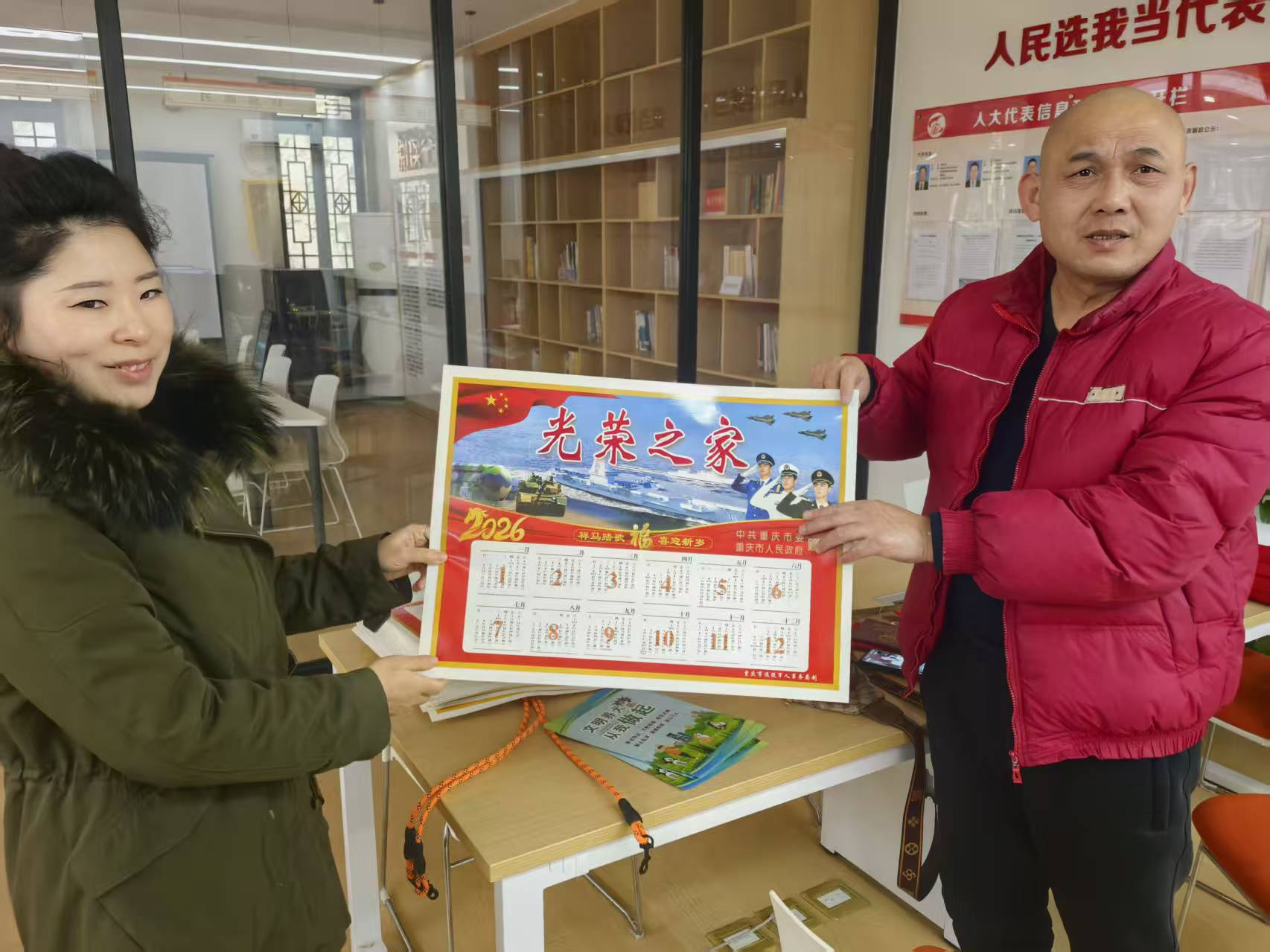 活动期间,社区为军保障员通过微信群通知、电话联络、上门走访等多种形式,为辖区退役军人及家属送上年画。一张小小的年画,既为“退伍不褪色”的退役军人捎去了新年祝福,更成为社区与退役军人之间的爱心沟通桥梁。