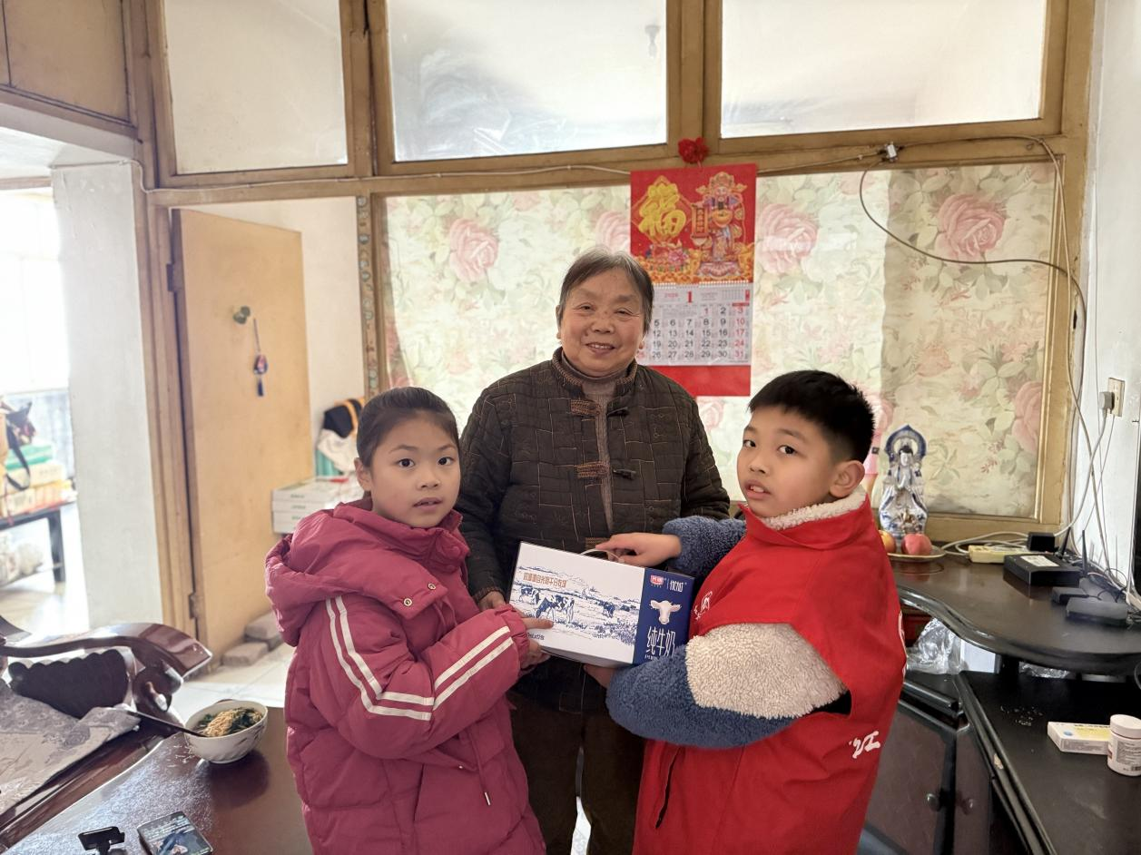 活动现场,在社区网格员的引导陪同下,青少年志愿者们怀揣热忱,手提牛奶前往老人家中。敲门入户后,孩子们主动向老人问好,双手将牛奶递到老人手中,随后围坐身旁与老人亲切交谈,关心老人身体状况与生活起居;网格员则叮嘱老人注意冬季用火用电安全,提醒其做好居家防护。老人们脸上洋溢着幸福的笑容,纷纷向网格员和孩子们表达谢意,直言这份关怀让寒冬变得格外温暖。