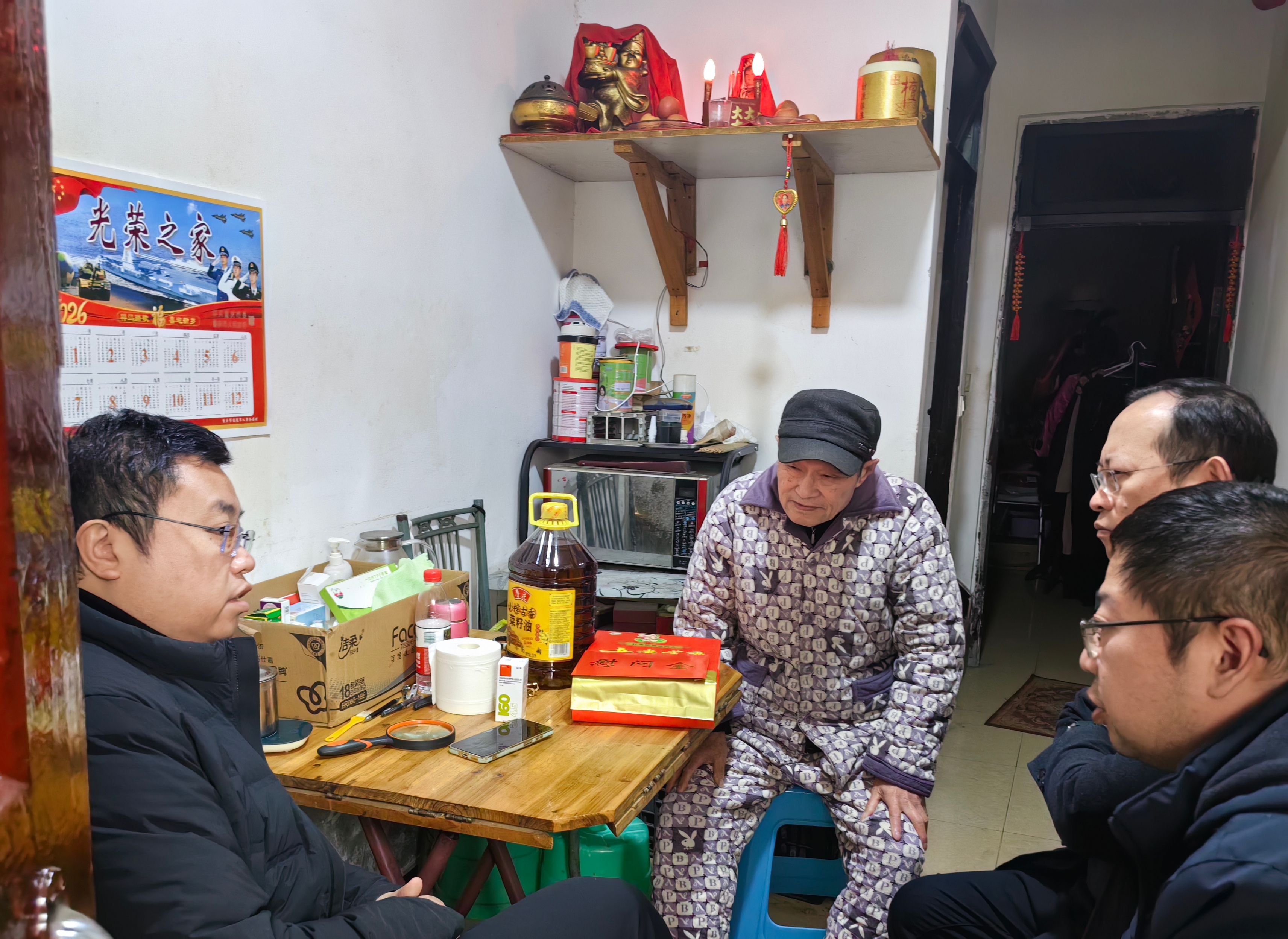 新春佳节将至,为弘扬拥军优属光荣传统,营造关心关爱退役军人的浓厚社会氛围,2月5日上午,街道党工委书记黄鑫带队,前往辖区退役军人陈永亮家中进行走访慰问,向他致以节日的诚挚问候和美好祝福,并送去慰问金及米、油等生活必需品。