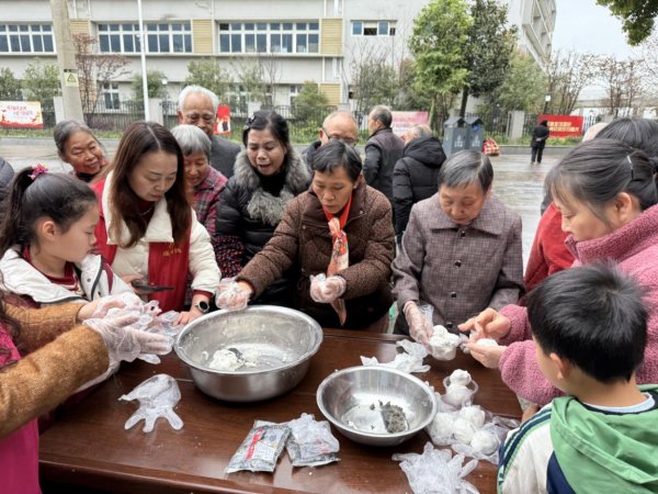 活动现场精心设置了猜灯谜、便民服务、汤圆制作、电影放映等多个互动区域。猜灯谜区人头攒动、欢声笑语不断,灯谜内容涵盖生活常识、传统文化、趣味字谜等,寓教于乐,吸引众多居民踊跃参与;汤圆制作区邀请居民和志愿者一同揉面、包汤圆,在传统手艺体验中增进邻里情谊;便民服务区邀请荣获“重庆市五星级志愿者”称号的理发师,为60岁以上老人免费理发,开展“文明换享家”旧物兑换积分活动,倡导绿色低碳生活方式;镇养老服务站同步放映惠民电影,为老年群体送上文化关怀。一系列活动既传承了民俗文化,又传递了民生温情。