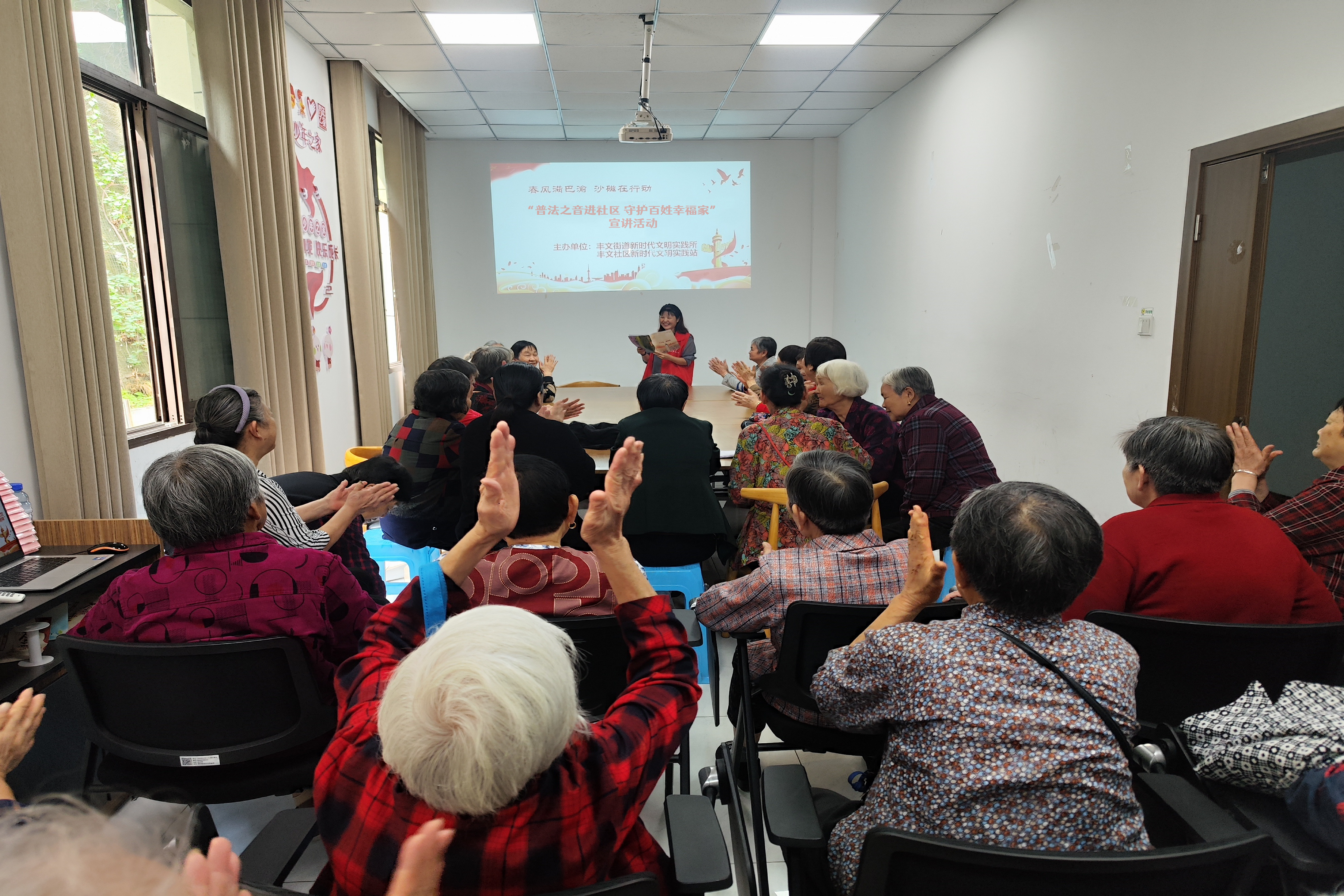 随着社会治理不断深化,居民在日常生活中面临的法律问题日益增多,如邻里纠纷、家庭财产分配、消费维权、老年人权益保障等。但部分居民由于法律知识储备不足,遇到问题时不知如何运用法律武器维护自身合法权益,甚至因法律意识淡薄陷入纠纷困境。为进一步增强居民的法治意识,提升依法维权能力,营造“学法、懂法、守法、用法”的社区氛围,丰文社区于10月16日下午,组织开展了“普法之音进社区 守护百姓幸福家”宣讲活动,将专业法律知识送到居民身边,为居民幸福生活保驾护航。