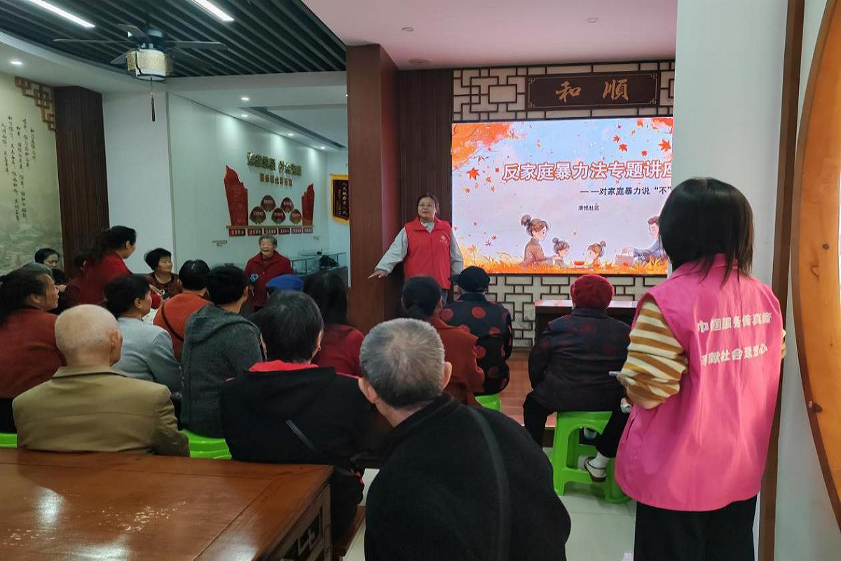 家庭暴力并非“家务事”,而是侵犯公民基本权利的违法行为。当前部分社区居民对家庭暴力的界定、危害及维权途径认知不足,受害者因“家丑不可外扬”等观念隐忍沉默,施暴者缺乏对法律后果的敬畏之心,这为家庭矛盾升级埋下隐患。社区妇联作为妇女儿童权益的“娘家人”,为提高辖区居民的法律意识与自我保护意识,倡导全社区共同反对家庭暴力行为。10月29日,丰文街道清悦社区妇联开展《中华人民共和国反家庭暴力法》普法宣传活动。